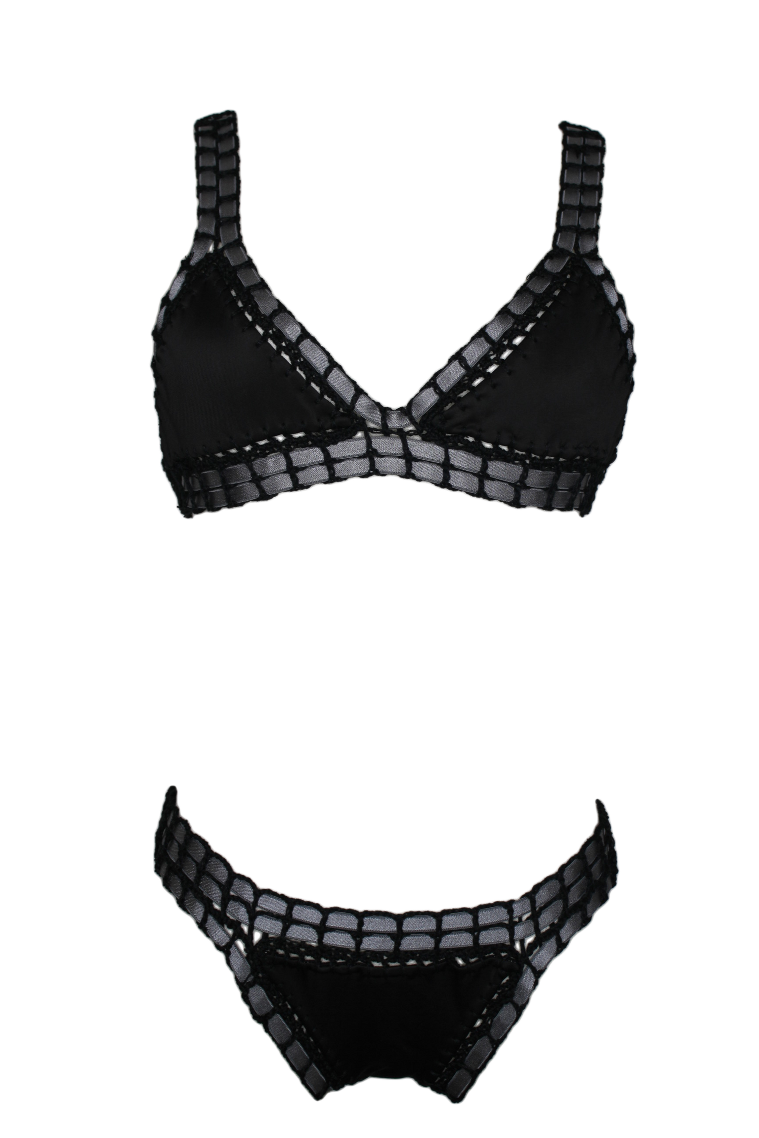 The Bikini Set Isa is designed with classic triangle coverage and a knit weave edge.