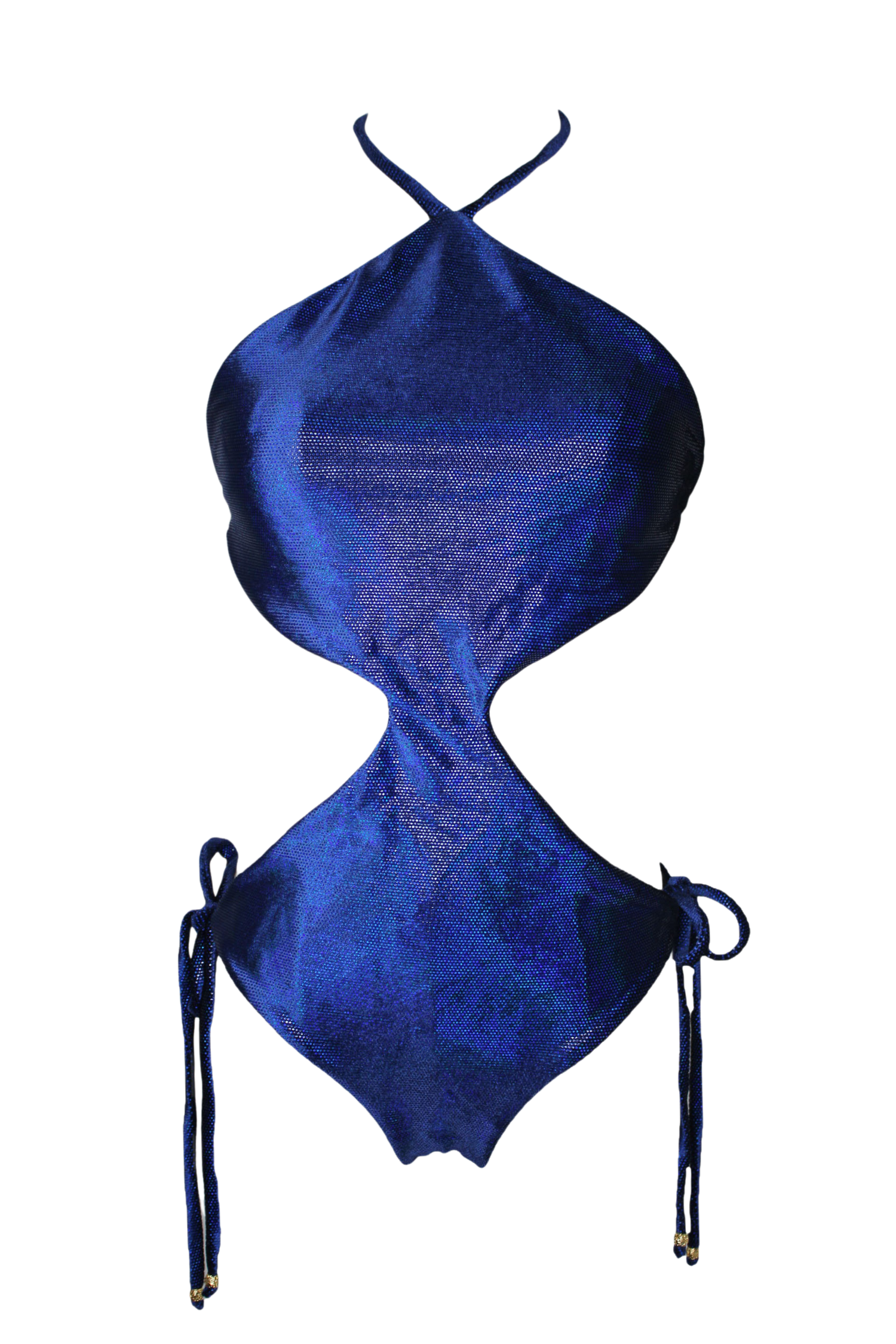 - Highlight your waist with the One Piece Juana. This swimsuit has a stunning blue velvet fabric with adaptable bottom and top straps